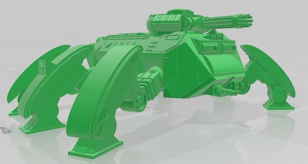 An updated version of the Ant walker, this one has new more armored lower legs that give it a more military appearance. A new turret with amour and gun options, Also a more armored hull with easier to print rear grill.
